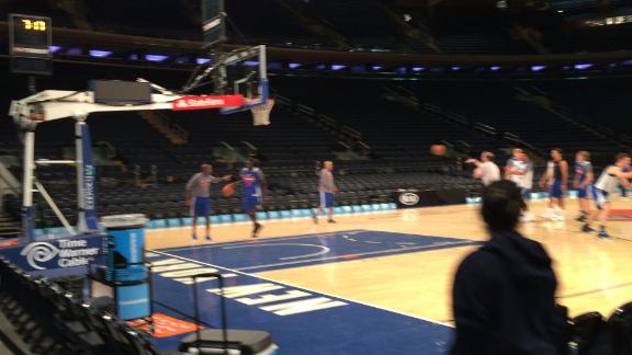 A look at some post-practice activity at the Knicks' workout Sunday at Madison Square Garden:
